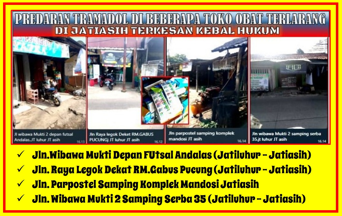 Jatiasih | Bekasi – Peredaran obat keras golongan G jenis tramadol di wilayah Jatiasih, Kota Bekasi, semakin marak dan memprihatinkan. Obat yang seharusnya hanya dapat diperoleh dengan resep dokter tersebut…