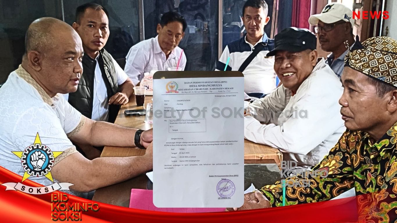 BEKASI, SOKSIMEDIA – Surat penonaktifan seorang ketua Rukun Tetangga (RT) yang dikeluarkan oleh Kepala Desa Sindang Mulya, Kecamatan Cibarusah, Kabupaten Bekasi, Jawa Barat, mendadak viral dan menyita perhatian publik. Surat…