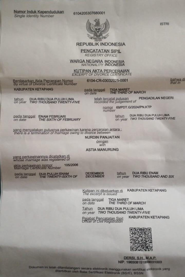 Setelah saling lapor, Asti secara tiba tiba menerima surat perceraian dari pengadilan agama pada Rabu, (05/03/2025). Surat tersebut diterima oleh anaknya. (bersambung/RED)