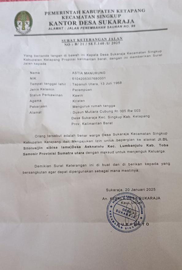 Laporan Astia (56) ke Polsek Marau pada Januari 2024 dan telah menerima Surat tanda penerimaan laporan Pengaduan, Nomor : STPL/01/I/2024 tertanda kepala kepolisian sektor Marau ditandatangani oleh IPDA Dewa Jaya Fergusta, S.H., M.H.,