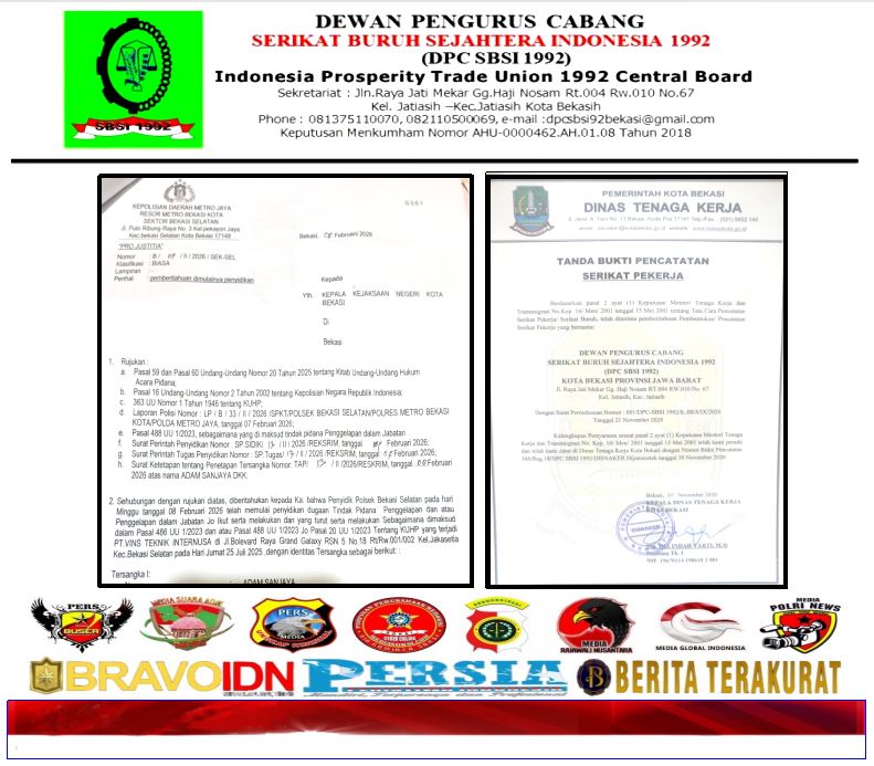 BEKASI SELATAN, SOKSIMEDIA.COM – Kasus penetapan delapan pekerja harian sebagai tersangka dugaan penggelapan di PT Vins Teknik Internusa (VTI), Bekasi Selatan, memicu sorotan tajam publik. Proses hukum yang berjalan dinilai mengabaikan mekanisme ketenagakerjaan yang semestinya, memunculkan dugaan kuat adanya praktik kriminalisasi terhadap buruh. Kamis (19/2/2026), publik masih menanti kejelasan nasib kedelapan pekerja yang kini berstatus tersangka.