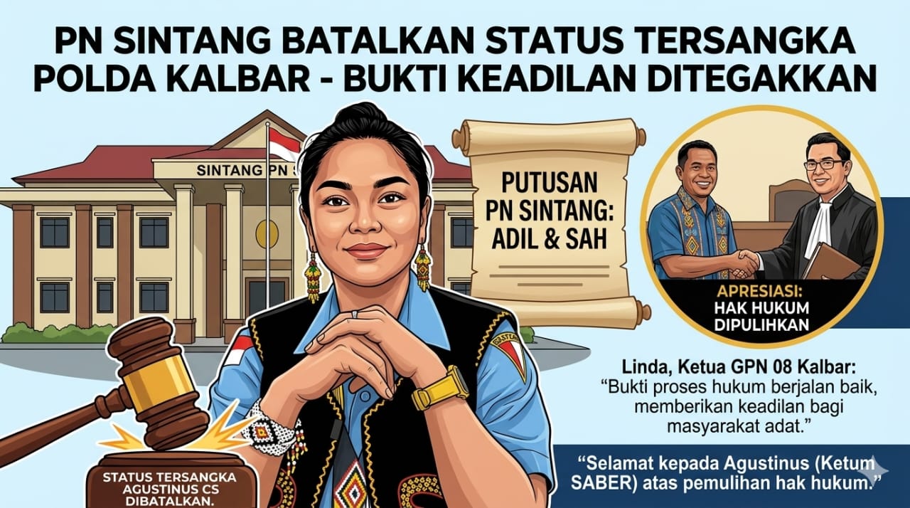 SINTANG, SOKSIMEDIA,COM – Pengadilan Negeri Sintang mengeluarkan putusan penting dalam sidang praperadilan yang digelar pada Senin, 30 Maret 2026. Majelis hakim secara tegas menggugurkan status tersangka yang sebelumnya ditetapkan oleh penyidik Kepolisian Daerah (Polda) Kalimantan Barat terhadap seorang pria bernama Agustinus dan kawan-kawan (cs) dalam kasus dugaan pencurian.