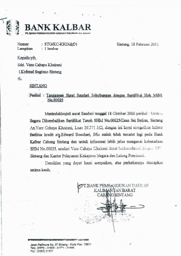 Kuasa hukum ahli waris Azwar Riduan, Erwin Siahaan, mengungkap fakta krusial tersebut. Salah satu sertifikat, SHM Nomor 25 atas nama Fera Cahaya Khairani, tercatat berada di Bank BPD Kalbar Cabang Sintang sejak 1994 hingga 2012.